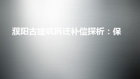 濮阳是我国历史文化名城,拥有丰富的精神文化遗产,包括最著名的郑国渠。 拆迁补偿中,必须保证文物的保存,不能因为发展而牺牲它们。此外,还应该加强对文化遗产的科学研究,发掘价值,传承文化,以保护文化遗产,推动历史文化发展。
