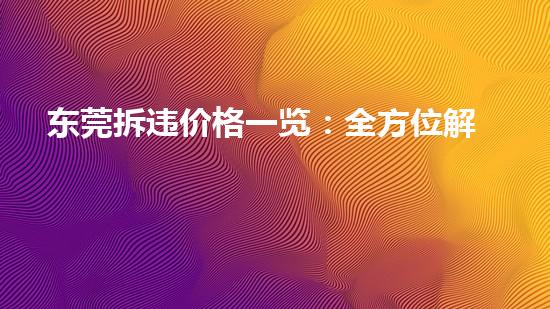 本文将详细介绍东莞拆违价格一览:全方位解析拆违费用!随着城市化进程的加速,各类建筑物迅速增多。然而,一些违法建筑、危房、旧房等也随之而来,给城市发展和人民生活带来了严重隐患。为了维护城市的美观、安全和规划,拆除一些不合格的建筑便成为了当务之急。本文将以拆除行业专家的角度,从多个方面对东莞拆违价格一览:全方位解析拆违费用!做详细、专业、深入的阐述。