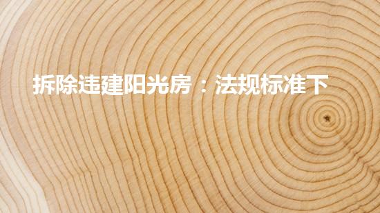 本文将介绍一篇题为“拆除违建阳光房:法规标准下的科学方案”的文章。文章将提供行业专家对于如何进行拆除的详细专业深入的阐述,并从四个方面探讨这个话题。这篇文章不仅适合于专业人士阅读,也适合普通读者了解相关知识。