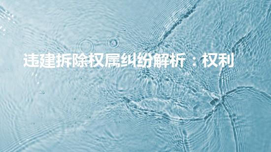 权利是违建拆除权属纠纷中最核心的问题。在拆除违法建筑时,相关权利的划分尤为重要。根据我国法律法规,房屋所有权归房屋所有人所有,而土地使用权则由国家所有。因此,在进行拆除时,需对房屋所有人、土地使用权人及相关产权人进行确认,划分相应权利,以保证在违建拆除过程中不侵犯任何正当权利。