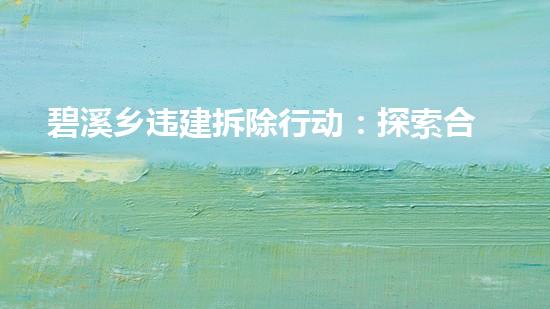 近年来,我国针对违建的拆除工作取得了不少成绩,其中以碧溪乡违建拆除行动为典型。本文旨在探讨这一行动的合规处置路径,分析其可供借鉴的经验和值得改进的方面。文章从拆除前的准备工作、拆除方案的设计与实施、拆除过程中的安全与环保、拆除后的后续处理和管理、技术创新和未来发展方向等几个方面进行深入阐述,力求为读者呈现深入、丰富、准确的专业视角。