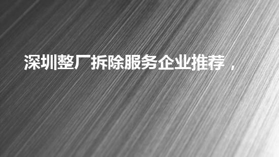 本篇文章介绍了深圳整厂拆除服务企业的相关信息,重点推荐了巴洛仕集团,巴洛仕的拆除技术非常先进,可以满足不同客户的需求。本篇文章是一篇有实用价值的文章,读者可以从中获取有用的信息和建议。