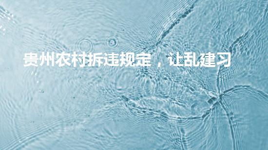贵州农村拆违规定的出台,标志着贵州的城乡环境整治迈上了新的台阶,在村庄环境整治、促进乡村发展、营造良好社会氛围等方面都起到了重要的作用。但同时也要注意规定的合理性和可操作性,在执行过程中加强宣传和教育,让全社会更加认识到拆违的重要性和必要性,共同建设美丽牛肉之乡。