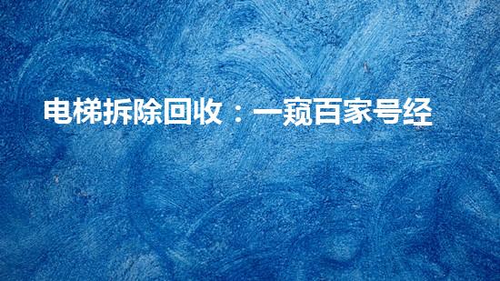 电梯拆除回收是一个非常专业的行业,需要我们有着扎实的专业知识和广泛的实践经验。本文介绍了电梯拆除回收在百家号上的经营心路,从拆除前的准备、专业技术的应用、环保施工等多个方面进行了详细阐述。希望能够为相关行业专家提供参考,并推动电梯拆除回收行业向着更加高效、可靠、安全的方向发展。