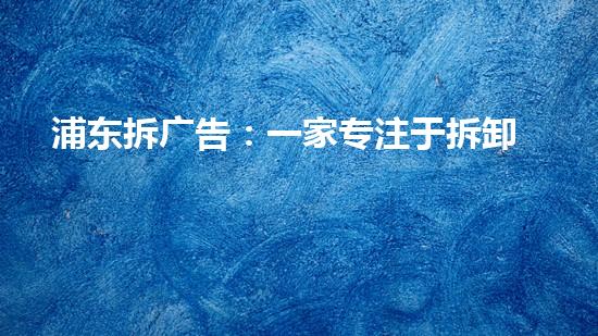 浦东拆广告是一家专注于拆除高空广告牌的公司,他们在提供市场需求服务的同时,也为城市环境保洁和交通安全作出了贡献。本文将从专业人员的角度出发,对该公司的优势、技术、项目、市场等方面进行详细阐述。