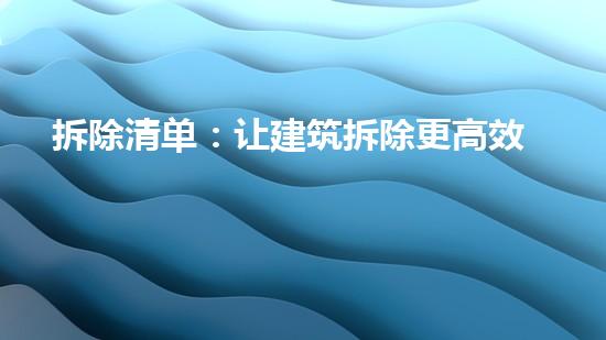 在进行拆除工作时,一份全面、规范的拆除清单是非常关键的。一个好的清单必须包含了拆除的所有方面,从初步拆除计划到最后的清理工作。拆除清单可以帮助工程师和技术人员在拆除之前更好地规划,减少了工作中的出错率,同时减小了环保风险和防止在拆除过程中对人员造成伤害的可能性。