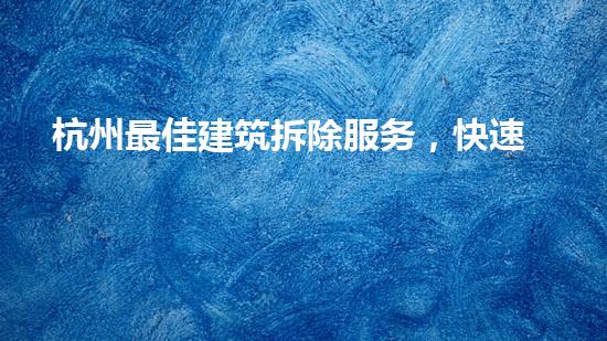 杭州最佳建筑拆除服务承诺快速拆除服务。他们拥有先进的设备和专业技术,可以快速拆除各种建筑和设施。他们的速度不会影响到拆除的质量和安全性。