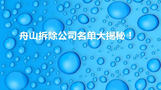 舟山作为一个海洋经济示范区的城市,其拆除公司也成为了整个环保行业的重要一环。通过大数据分析,我们整理出了一份详细的舟山拆除公司名单,进一步揭秘了这个行业的现状。其中,我们将呈现四个方面的内容,包括公司类型、企业资质、技术设备和实际案例。通过对这些方面的深入分析,我们可以更好地了解舟山拆除行业的发展,以及未来的发展趋势。