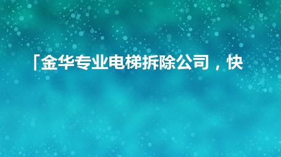 随着城市化进程的不断发展,电梯已经成为了城市交通建设中不可或缺的一部分。然而,在电梯设备的寿命到期或者需要其他原因进行拆除时,需要找到一家专业的电梯拆除公司进行操作。本文将介绍金华专业电梯拆除公司,这是一家快速、安全、有保障的公司,可以为客户提供专业的电梯拆除服务。