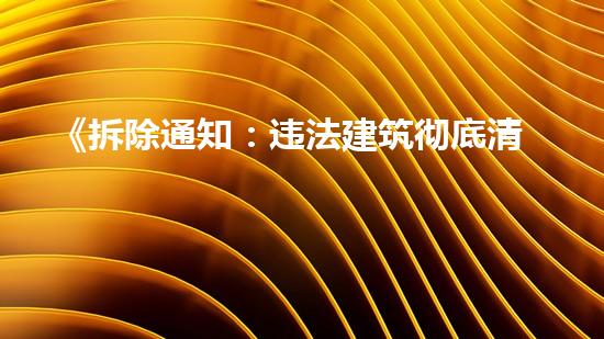 《拆除通知:违法建筑彻底清除,为城市更美而努力》是一篇关于城市拆违的文章。该文章的背景信息介绍了城市发展过程中出现的违法建筑问题,并提出了解决这些问题的重要性。作为化工技术专家,我将从拆除行业的角度出发,阐述该文章的主要观点和结论,并提供相关的专业支持和证据。