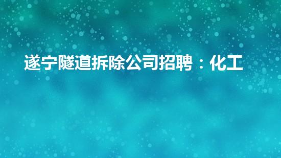 遂宁隧道拆除公司正在寻找化工技术专家,以支持他们的拆除项目。本文将深入探讨遂宁隧道拆除公司招聘化工技术专家的原因,并从几个方面详细介绍这种专业如何在拆除行业中发挥重要作用。