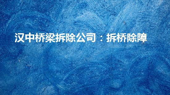 汉中桥梁拆除公司是一家拆桥除障,铸桥新生的专业公司。本文将从化工厂拆除、水刀切割等多个方面介绍他们的专业技术,以及其在污染治理、废物处理等方面所取得的成果。