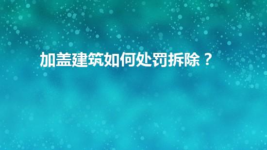 加盖建筑的处罚首先要针对其是否违反了建筑规范。如果加盖建筑在建造过程中违反了建筑规范,那么应该按照相关法规进行处罚。在处罚前,应先对加盖建筑进行检查,记录违规情况,并发放相关通知书。如果加盖建筑的建造者不愿意配合或者拒绝改正,则可以通过强制拆除等手段强制执行处罚。