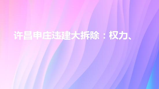政治是影响许昌申庄违建大拆除的重要因素。许昌市政府发布了拆除令,对申庄地区的违建进行拆除。但是,在实际操作过程中,政治干预和利益驱动也成为了影响拆除效果的重要因素。