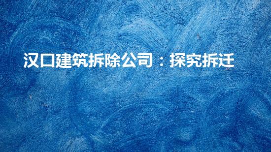 汉口建筑拆除公司一直致力于探究新的拆迁技术,为提高拆迁效率、降低安全风险、减少环境污染作出了巨大贡献。本文围绕汉口建筑拆除公司的新技术展开,从多个角度进行深入解析。