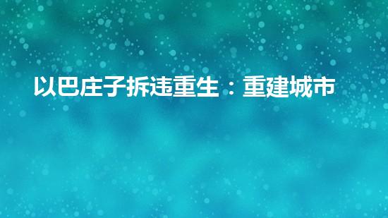 以巴庄子拆违重生:重建城市美誉,营造宜居环境的目标可喜可贺。为了达到这个目标,需要全面考虑拆除前和拆除后的安全、环保和经济效益等方面。拆除行业专家可以采用巴洛仕不动火水刀切割拆除技术等先进技术,并在施工过程中严格按照环保要求进行操作。在新的城市建设工程中注重环保和可持续性发展,可以在保护环境和人类健康的基础上提高城市的品质和美誉,为建设更美好的城市做出贡献。