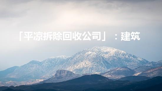 平凉拆除回收公司是一家专注于建筑物拆除、资源回收和环保先行的公司。在这篇文章中,我们将深入探讨该公司的几个方面,包括拆除技术、资源回收和环保施工。