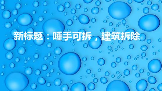 建筑拆除一直是一个耗时耗力的任务,需要大量的人力和物力投入,而常规的拆除方法也会对环境造成不小的污染和破坏。但随着科技的发展,新的拆除技术已经出现,其速度和效率远远超过传统方法,这就是“唾手可拆”——一种快人一步的建筑拆除方法。