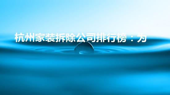 作为化工技术专家,我希望通过以下几个方面给读者详细介绍杭州家装拆除公司排行榜,讲述每一家公司的特点,分别从以下方面来分析: