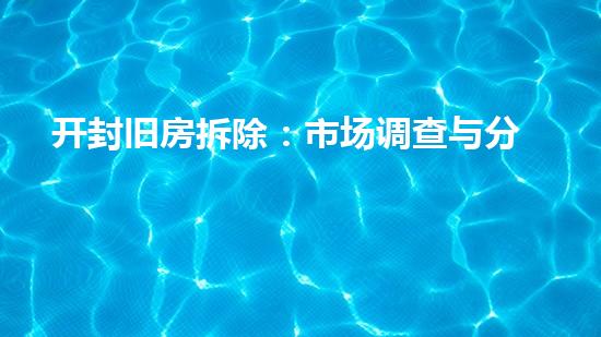 通过市场调查与分析,我们可以看出开封市旧房拆除市场存在着一定的困难和挑战,也存在着很多机遇和发展空间。随着市场的规范化和技术的进步,市场的发展前景将越来越广阔,同时相关部门也需要做出充分努力,保障市场的安全稳定和顺利发展。