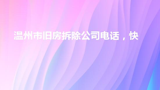 随着工业化进程的推进和城市化进程的加速,越来越多的建筑物变得老化、落后、破败。在这种情况下,旧房拆除行业成为了一个迅速发展起来的行业。温州市旧房拆除公司电话<电话号码>提供快速、安全、环保的服务,为全市拆除行业树立了良好的榜样。本文以拆除行业专家角度,深入展开对这家公司的分析,重点从四个方面展开:公司规模与设备、安全施工、环保措施、应用技术措施。