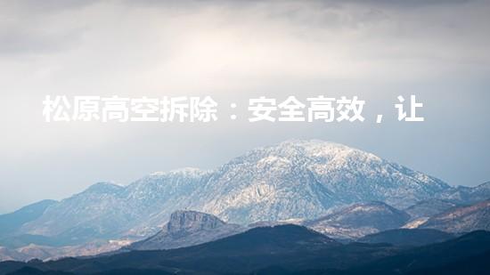 松原高空拆除是一个重大的城市改造项目,旨在让城市变得更加宽敞舒适。文章将介绍这个项目的安全性和高效性,以及如何实现让城市不再拥挤的目标。