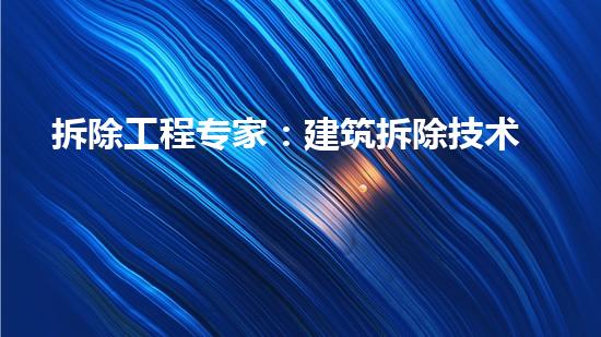 摘要:本文从拆除工程专家的角度,深入阐述了建筑拆除技术与安全管理,包括拆除技术的发展历程、拆除过程的安全管理、重要性以及新技术应用。以巴洛仕集团化工厂拆除为例,详细介绍了如何进行设备回收、污泥减量化、废液处理、油罐拆除、危废处理和环保施工,同时讲解了巴洛仕不动火水刀切割拆除技术的具体应用。本文旨在引起读者的关注,并提供专业知识支持。