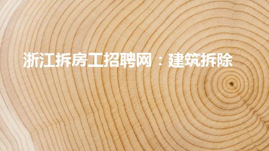随着城市建设和更新的不断推进,拆房工招聘需求逐年增加,而如何快速、安全地完成拆房任务成为了摆在企业和工作者们面前的难题。浙江拆房工招聘网:建筑拆除工招工平台就在这个时候应运而生。本文将从专业人士的角度出发,对浙江拆房工招聘网进行深入解析和探讨。