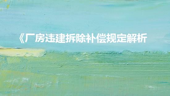 厂房违建拆除补偿规定是指对于非法建设的厂房和违反规划建设的厂房,应当依据相关法律和规定进行拆除和补偿。这些规定是保护国家土地资源,促进城市建设的基本法律和规则。拆除行业专家需要遵循这些规定,并将其运用到实际工作中,为城市建设做出贡献。