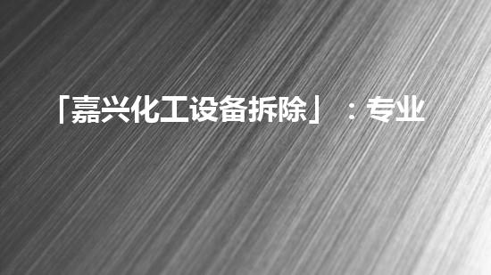 嘉兴化工设备拆除是一家专业拆除工程服务公司,致力于安全高效地拆除化工设备。本文介绍了该公司的拆除技术和服务,为读者提供了深入的背景信息。