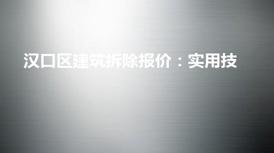 本文主要介绍了汉口区建筑拆除报价的实用技巧和市场调研分析。从拆除前的准备工作到后续处理中的环保施工等多个方面进行了详细的阐述。同时,本文还介绍了巴洛仕集团化工厂拆除案例,并探讨了不动火水刀切割拆除技术的应用。从专业技术角度分析,本文对拆除行业人员制定拆除报价提供了实用的技巧和方向。