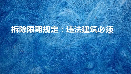 城市规划与建设是一项长期性而复杂的工程。任何建筑、设施或基础设施,都需要按照规划和建设要求落实到位。违法建筑的存在,不仅会影响城市形象和规划,更会对城市环境和市民生活产生严重的负面影响。因此,拆除限期规定是为了保障城市规划和建设需要,既符合人民群众的利益,也符合环境保护和可持续发展的要求。