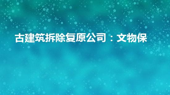 古建筑的保护和传承一直是一个重要的话题。在这篇文章中,我们将探讨古建筑拆除复原公司的角色,该公司以文物保护和历史传承为中心,致力于在拆除过程中做出持续的努力。我们将从4-6个方面对该公司进行详细专业深入的阐述,并提供支持和证据,旨在进一步强调古建筑保护的重要性。