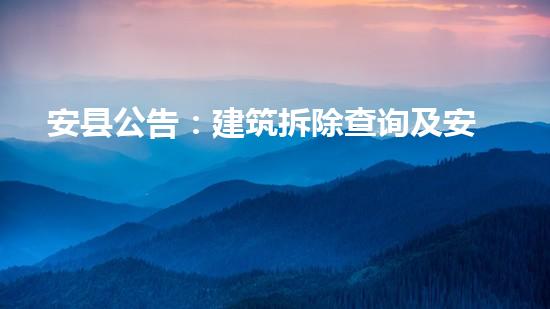 安县公告:建筑拆除查询及安全须知是针对近年来建筑拆除行业在安全生产方面存在的问题发布的,目的是为了确保建筑拆除工作的正常顺利进行,并保障人身、财产安全。本文将以拆除行业专家的角度,就该公告内容从四个方面展开详细专业深入的阐述,使读者对该公告有更深入的认识和理解。
