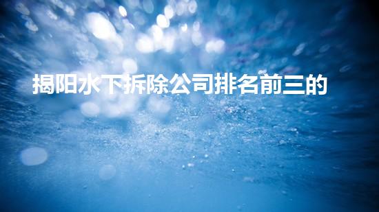 揭阳水下拆除公司排名前三的公司在技术水平、拆除设备、安全措施和专业团队等方面具有显著优势,这些优势让该公司在市场上表现得非常出色。同时,该公司也在不断努力提高自身的服务专业度和施工效率,以适应国家和客户对于水下拆除市场要求不断提高的现实需求。