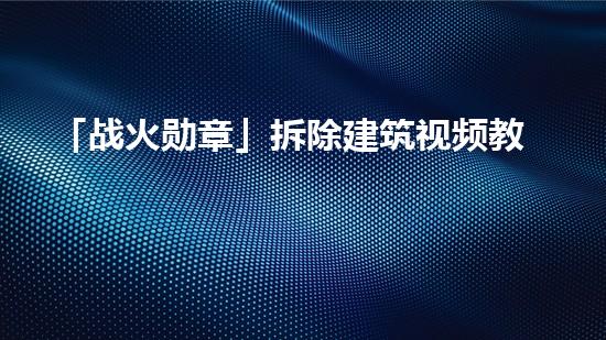 「战火勋章」拆除建筑视频教程相比较传统的培训方式,更加节省时间和金钱成本。对于单位和拆除行业专家而言,能够显著提高效益和费用效益,提高工作的质量和效率。