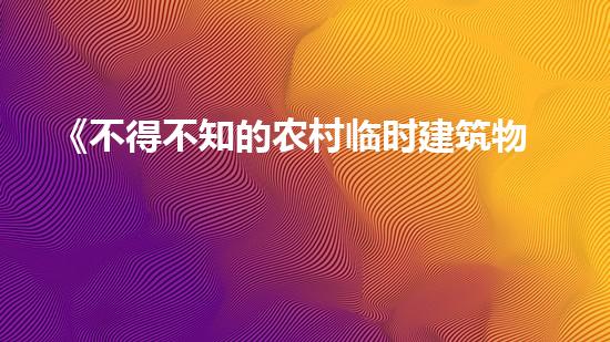 农村临时建筑物是指在农村地区用于临时居住、工作、储存物品等的建筑物。按建筑物的功能和用途,可分为居住型、生产型、储存型等不同类型。
