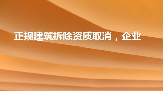 正规建筑拆除资质取消是国家为了推动拆迁拆除行业的市场化、专业化发展,淘汰一些不合规、服务品质差的企业而推出的政策。对拥有资质的企业而言,这也意味着竞争的加剧。企业在面对更多的竞争对手时,需要提高服务质量和技术水平,提高自身的竞争力。