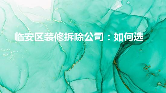 在临安区装修拆除市场竞争日益激烈的情况下,如何选择一家好的拆除公司成为一个让人头疼的问题。本文从专业角度出发,详细阐述了选择临安区装修拆除公司的四个方面。包括公司的信誉度、资质、服务态度、技术实力等,以期为读者在选择临安区装修拆除公司时提供科学的建议。