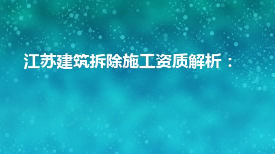 江苏建筑拆除施工资质是拥有该省内合法施工拆除资质的企业必须具备的条件之一。本文从专业角度出发,深入阐述江苏建筑拆除施工资质的申请流程、所需条件和注意事项,并探讨了巴洛仕化工厂拆除案例中的拆除技术应用。