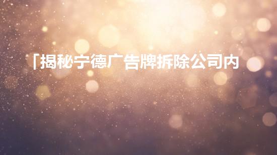 摘要:本文将揭露宁德广告牌拆除公司内幕,通过揭示公司的实际操作和流程,帮助读者了解该行业的真相。