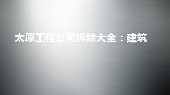 太原工程公司拆除大全是一家提供全方位拆除服务的公司,包括建筑、设备、桥梁、隧道等领域。通过本文,我们将会为读者介绍太原工程公司所提供的服务,并深入研究其专业知识,以及所使用的技术和方法。我们还会通过案例研究来展示太原工程公司如何在拆除领域领先于其他企业。本文旨在吸引读者的关注并提供必要的背景信息。