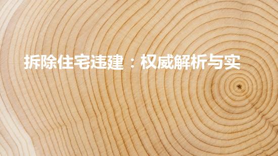 摘要:本文详细介绍了拆除住宅违建的权威解析与实例分析。从专业角度出发,作者探讨了拆除违建的重要性、流程、技术、法律和环保等多个方面。结合实际案例,本文为读者呈现了一些拆除违建工程的成功实践和经验分享。