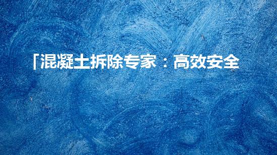 在混凝土拆除过程中,环保施工也是一个非常重要的环节。专家会采用不同的技术和设备,进行环保施工,以确保环境和人员的安全。同时,环保施工也需要遵守相关的规范和要求,以确保工作符合标准。