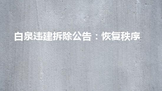 违建作为一种不合法行为,会对城市规划、安全和环境造成严重影响。白泉作为一个发展中的城市,也出现了大量的违章建筑。这些违建区域往往是长期荒废的区域,存在着安全和环境污染等问题。