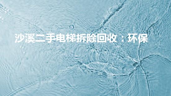 随着经济的快速发展和城市化进程的加快,电梯作为垂直运输的重要手段,广泛应用于各种建筑中。然而,随着时间的推移和技术的进步,许多建筑物中的电梯已经老化,需要进行更新和更换。这时,沙溪二手电梯拆除回收就成为了一种可持续的解决方案。本文将从环保实践和行业趋势两个方面对该领域进行详细的阐述。