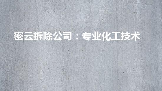 密云拆除公司的专业化工人员具有丰富的实践工作经验和敬业精神。他们不仅熟悉化工设备结构、操作、维修等方面的知识,还具备丰富的拆除经验和强大的问题解决能力。因此,当面对一些特别复杂或重要的工厂拆除工作时,密云拆除公司的专业化工人员能够快速解决问题,并提供有效的技术解决方案。