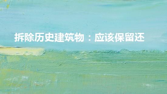 综上所述,历史建筑物的保留和拆除既有利也有弊。保留历史建筑物有利于文化传承和城市吸引力的提升,但需要进行适当的维修和改造。而拆除历史建筑物可以为城市开发提供更多的土地,但需要注意环境影响和人们的文化感受。因此,在考虑保留和拆除历史建筑物时,需要综合考虑多方面的因素,做出更加恰当的决策。
