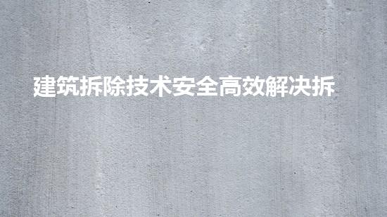 随着科技的不断发展,建筑拆除的技术也在不断创新。打破了传统的拆除方式,采取了新的高效拆除技术来提高拆除的速度,例如水切割、爆破等技术的应用,以及大型机械设备的进一步优化。这些技术的应用打破了传统的拆除模式,缩短了拆除周期,加速了拆除进程。