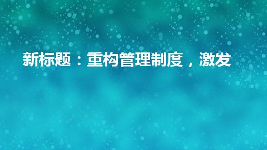 随着经济的不断发展,企业在管理制度上也需不断适应变化。本文将从四个方面深入阐述如何重构管理制度,激发企业的活力,以达到更好地适应市场发展的目的。文章将从改进管理流程、加强员工培训、营造良好的企业文化以及利用新技术手段等方面进行阐述,给读者提供全方位的思路和建议。